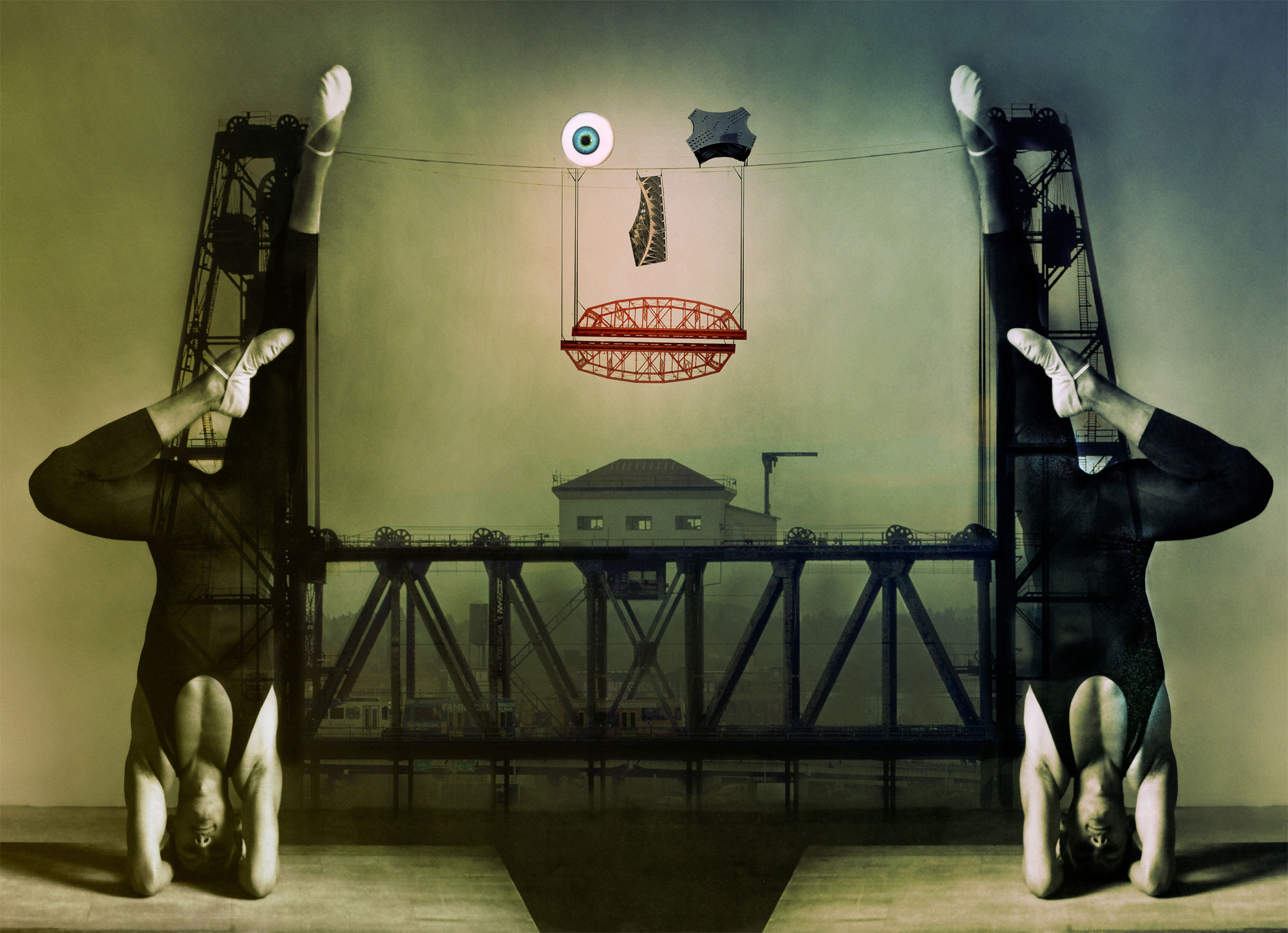 A photo exhibit inspired by Bridging Urban America, exploring monumental bridges through the interplay of man-made structures and human form, where urban symbols and fantasy collide against the forces of nature.